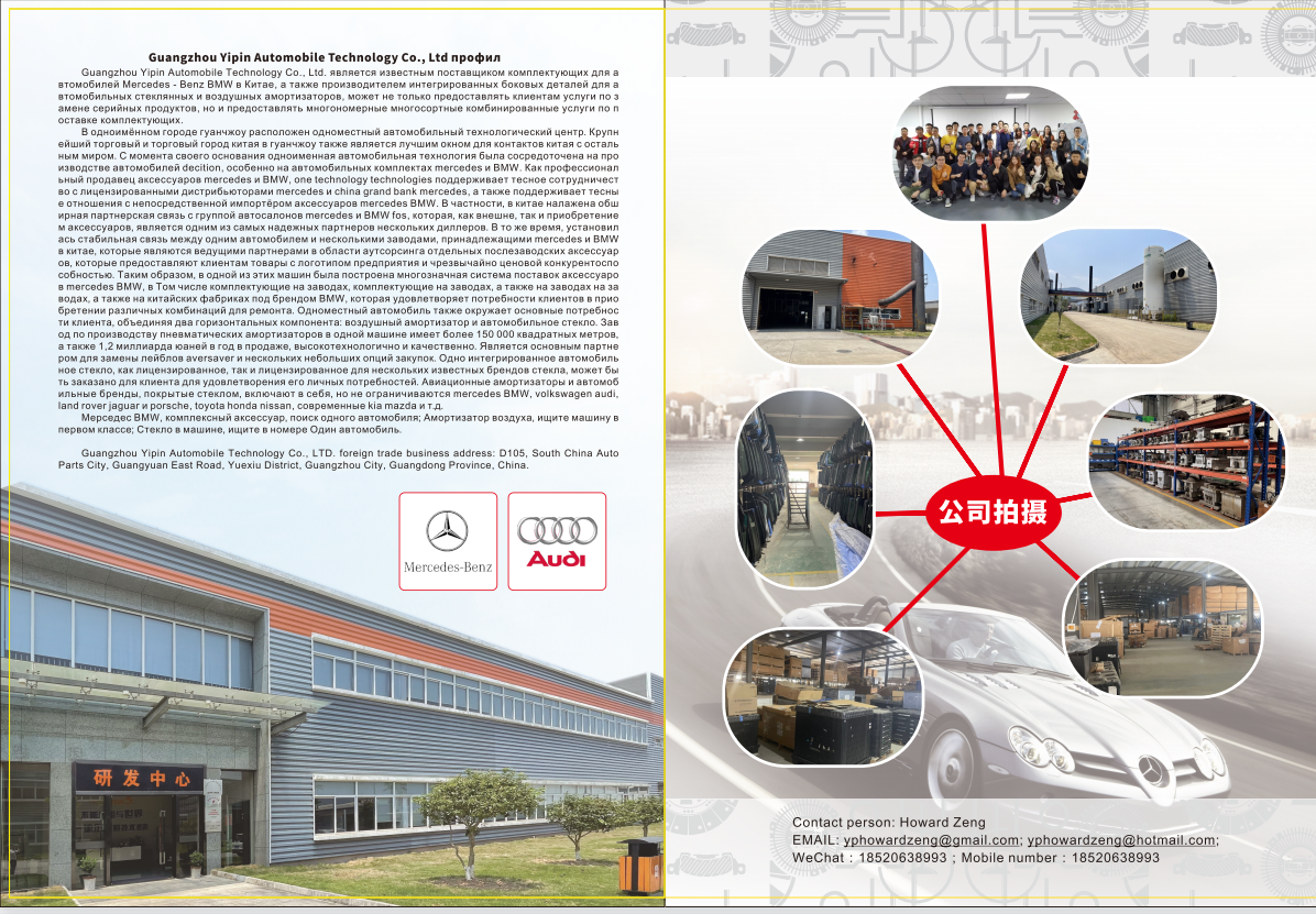 Guangzhou Yipin Automobile Technology Co., Ltd. является известным поставщиком комплектующих для автомобилей Mercedes - Benz BMW в Китае, а также производителем интегрированных боковых деталей для автомобильных стеклянных и воздушных амортизаторов, может не только предоставлять клиентам услуги по замене серийных продуктов, но и предоставлять многономерные многосортные комбинированные услуги по поставке комплектующих.