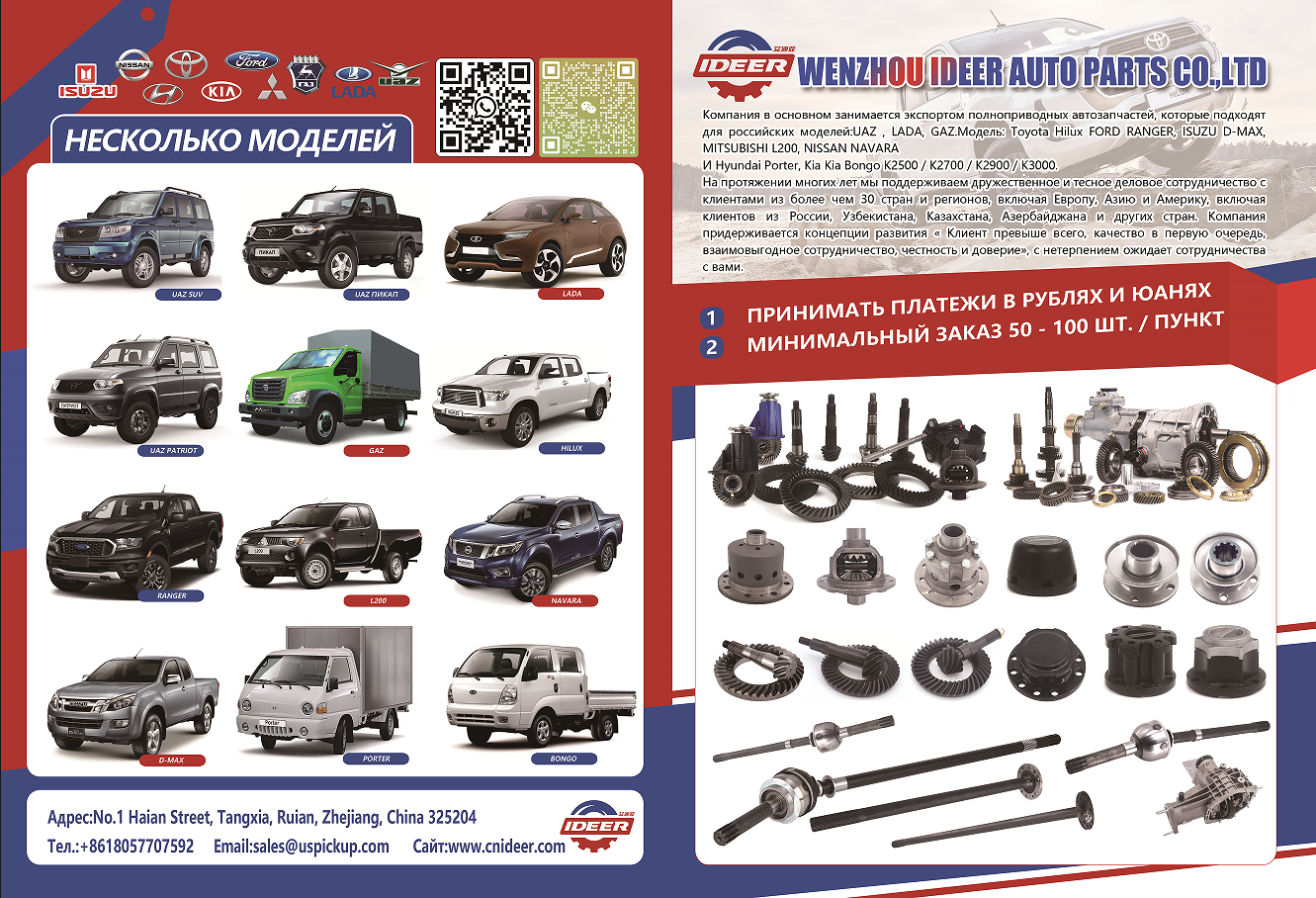 Введение:KомпаниЯ в основном занимаетсЯ экспортом полноприводных автозапЧастей, которые подXодЯтдлЯ российских моделей:UAZ ,LADA,GAZ.Mодель: Toyta HiUx FORD RANGER, ISUZU D-MAX.MITSUBISHI L200, NISSAN NAVARA